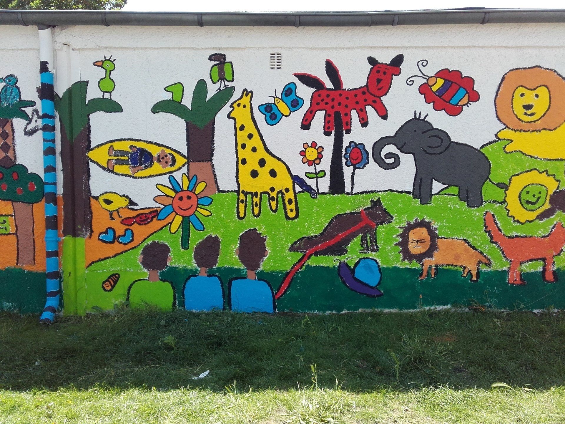 Wie aus grauen, langweiligen und hässlichen Wänden fröhliche, farbenfrohe Lebensräume werden können, zeigen die vielen Kunstprojekte im öffentlichen Raum, die von mir im Auftrag verschiedener Institutionen konzipiert und durchgeführt werden.
